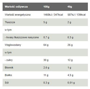 | Wartość energetyczna | 1456kJ / 344kcal | 583kJ / 138kcal |